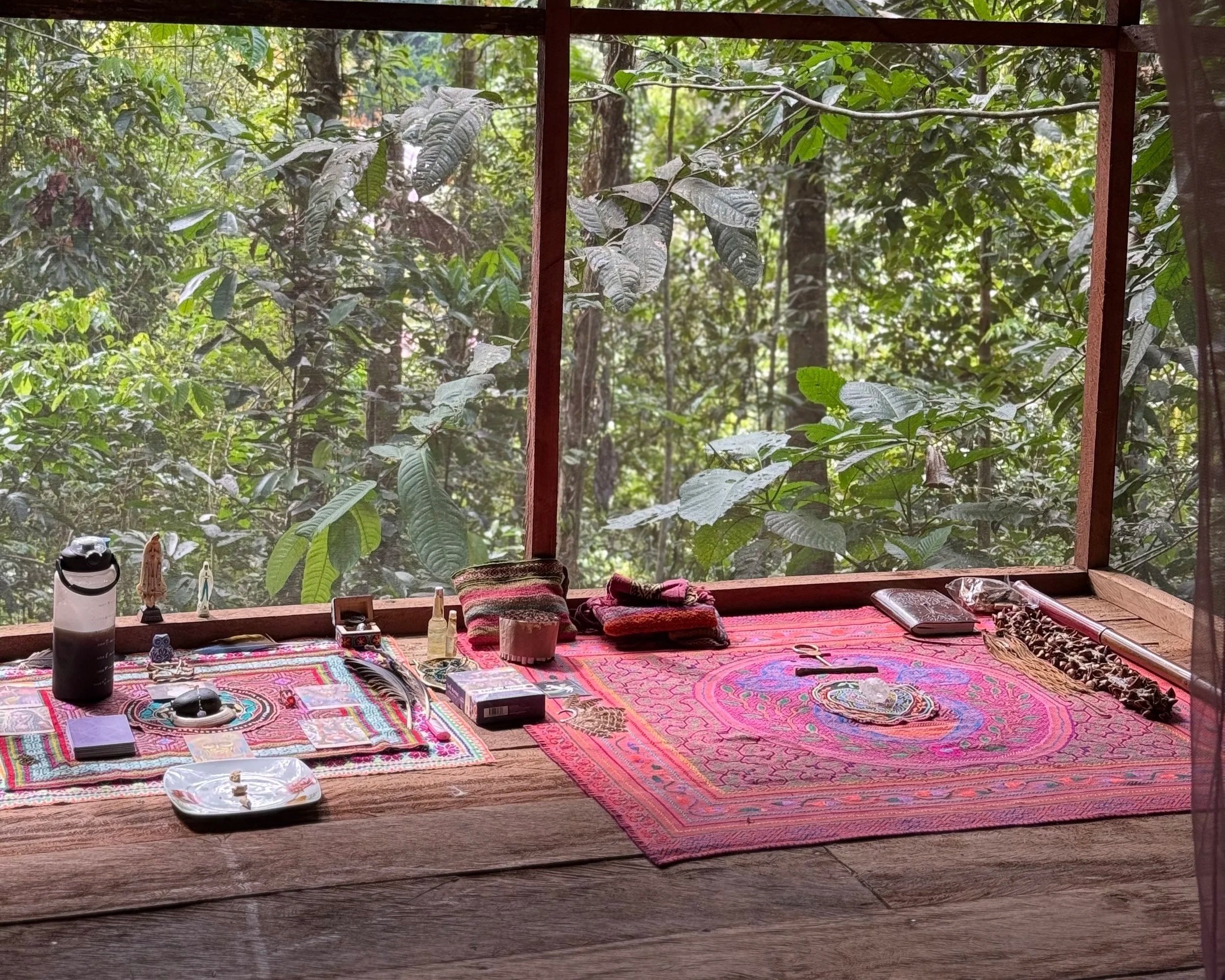 I am an advocate for Indigenous rights, rooted in ancestry and committed to carrying forward the voices and wisdom of my elders with integrity and care. When not guiding retreats around the world, I remain in deep study and ritual, undergoing initiations and receiving transmissions entrusted to me through long-standing relationships and devotion. With reverence, I sing icaros and share prayers in the Shipibo and Quechua languages, honoring their living breath.